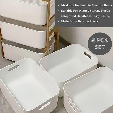 Bestby-8 Piece Plastic Desktop Storage Organizer Box with Handle(30.5x20x12cm) – White