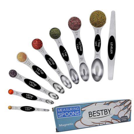 Bestby-9 piece Stainless Steel Magnetic Dual-sided Measuring Spoons & Leveler