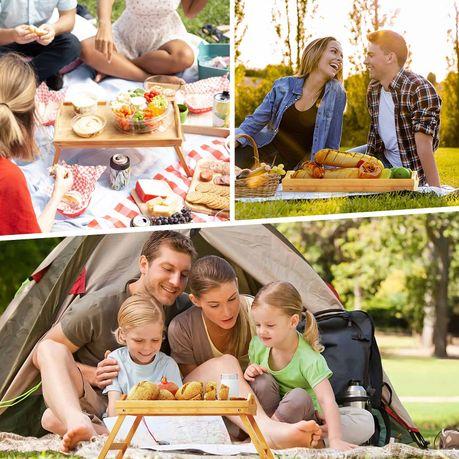 The bamboo tray/table with a foldable leg design can be used as trays or bed tables, which is ideal for breakfast in bed or TV dinners, laptop stands, or even a picnic table. It is also perfect for people who have just had an operation in the hospital, the elderly with mobility, or kids
