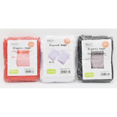 Bestby – Bulk 50pcs Organza Bags – 9x12cm – Black – Red