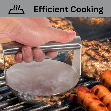 -Smooth & Flat Surface: The presser grill’s smooth and flat bottom will help you get burgers that are all the same thickness. When pressed down on, smooth, brushed stainless steel feels nice; its top press minimizes sticking and resists rust. Dishwasher safe and easy to clean.