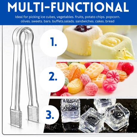 Complete Serving Set & Multi-Purpose Use: This set includes six clear serving tongs and one matching scoop, offering everything you need for serving food and treats. Perfect for parties, buffets, weddings, candy tables, and everyday kitchen use.