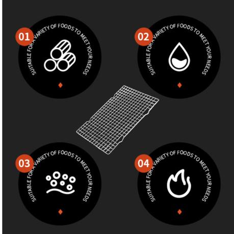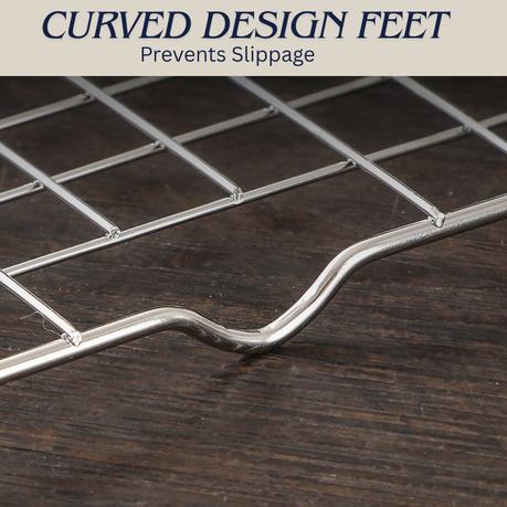 – Unique & Durable Design: Crafted with tightly welded parallel lines for enhanced durability and stability; Smooth curled edges-no sharp corners; High-density grid-prevents small foods from falling through; Four sturdy feet elevate the rack to improve airflow for faster cooling and crispier roasting