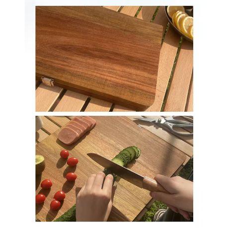 Bestby-Outdoor Folding Wooden Cutting Board with Stainless Steel Utensils