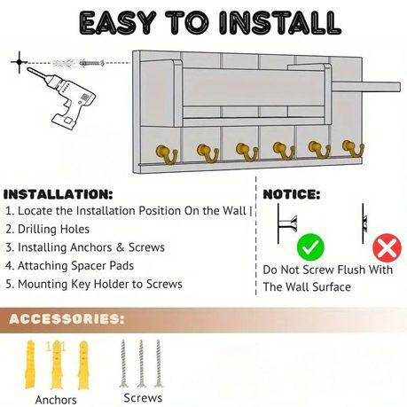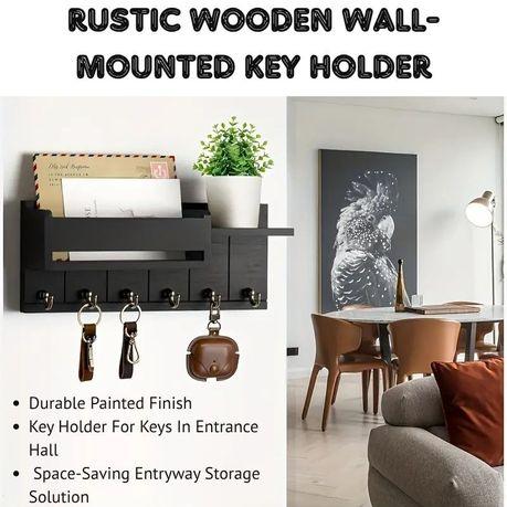 Upgrade your home entryway or office with the Bestby Rustic Wooden Wall Key Holder with Mail Organizer & Tray. Crafted from high-quality wood and designed to save space while adding charm, this versatile unit helps you keep your daily essentials neatly stored and within easy reach. Perfect for anyone seeking a clutter-free and stylish solution for their home or workspace. Its compact size makes it ideal for small spaces, while the rustic wooden finish complements a wide range of interior styles. Say goodbye to misplaced keys and hello to organized living.