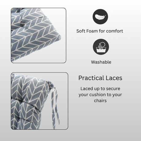 Tie and Comfort: 2 strengthened ties keep your cushions securely fastened to the furniture, don’t worry about slipping when you sit on it. Overstuffed soft filling material brings you great feelings.