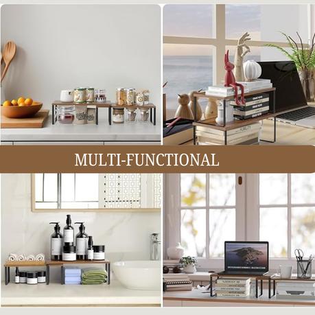 Declutter and organize any space with the Stackable Shelves Organizer. Perfect for kitchens, bathrooms, offices, and bedrooms, this multifunctional shelf set keeps items neat, accessible, and stylishly displayed. From dishes, spices, and canned goods to toiletries, cosmetics, and office supplies, these sturdy shelves maximize storage while maintaining a clean, modern look.