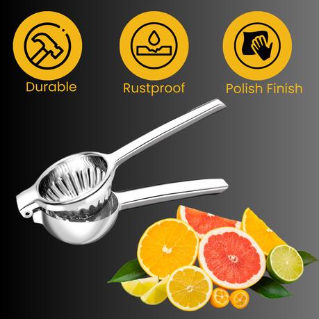 Experience effortless juicing with this heavy-duty manual citrus press, designed to extract maximum juice from lemons, limes, oranges, grapefruits, and other citrus fruits with minimal effort. Crafted from premium stainless steel, this juicer combines durability, hygiene, and sleek design in one essential kitchen tool.