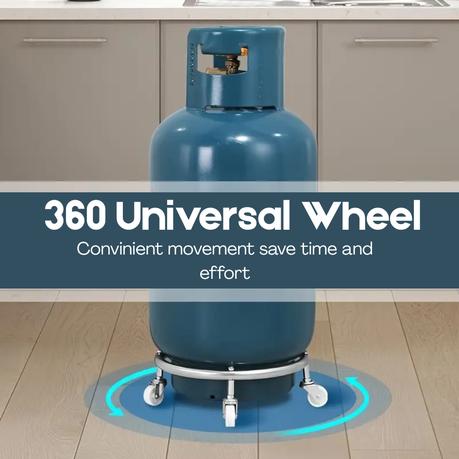 Crafted from premium-grade stainless steel, the frame provides exceptional strength and reliability for securely holding standard LPG cylinders. With a load capacity of up to 80 kg, it handles heavy-duty use with ease, while the rust-resistant construction ensures long-lasting performance in various environments. - 360 Rotating Wheels with Locks: