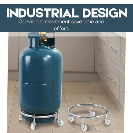 The trolley is fitted with four smooth-rolling swivel caster wheels that rotate a full 360 , allowing you to move the gas cylinder effortlessly in any direction. Each wheel features a secure lock to keep the trolley firmly in place, adding safety and stability during use or when parked. - Stable Circular Base: