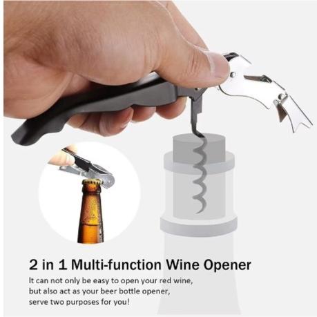 The wine opener with foil cutter and stopper makes opening and preserving wine easy and convenient. Cock screw design ensures easy insertion into the cork. With all the necessary tools in one set, it’s perfect for wine lovers and makes a great gift.