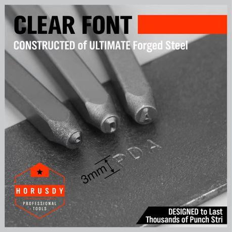 – Strong and Durable: All stamps and contents are made of high quality hardened carbon steel for strength and hardness; These attributes reduce wear outs and insures these stamps are long lasting, designed to last over 10,000 strike; Because of the steel construction these stamps will survive almost any stamping job you can throw at them;